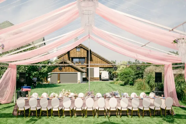 Tutti i nostri gazebo sono progettati per essere resistenti alle intemperie e agli agenti atmosferici, assicurando che il tuo matrimonio si svolga senza imprevisti, indipendentemente dalle condizioni meteo. Offriamo inoltre servizi di montaggio e smontaggio professionali, così potrai concentrarti esclusivamente sul tuo grande giorno senza doverti preoccupare di nulla.